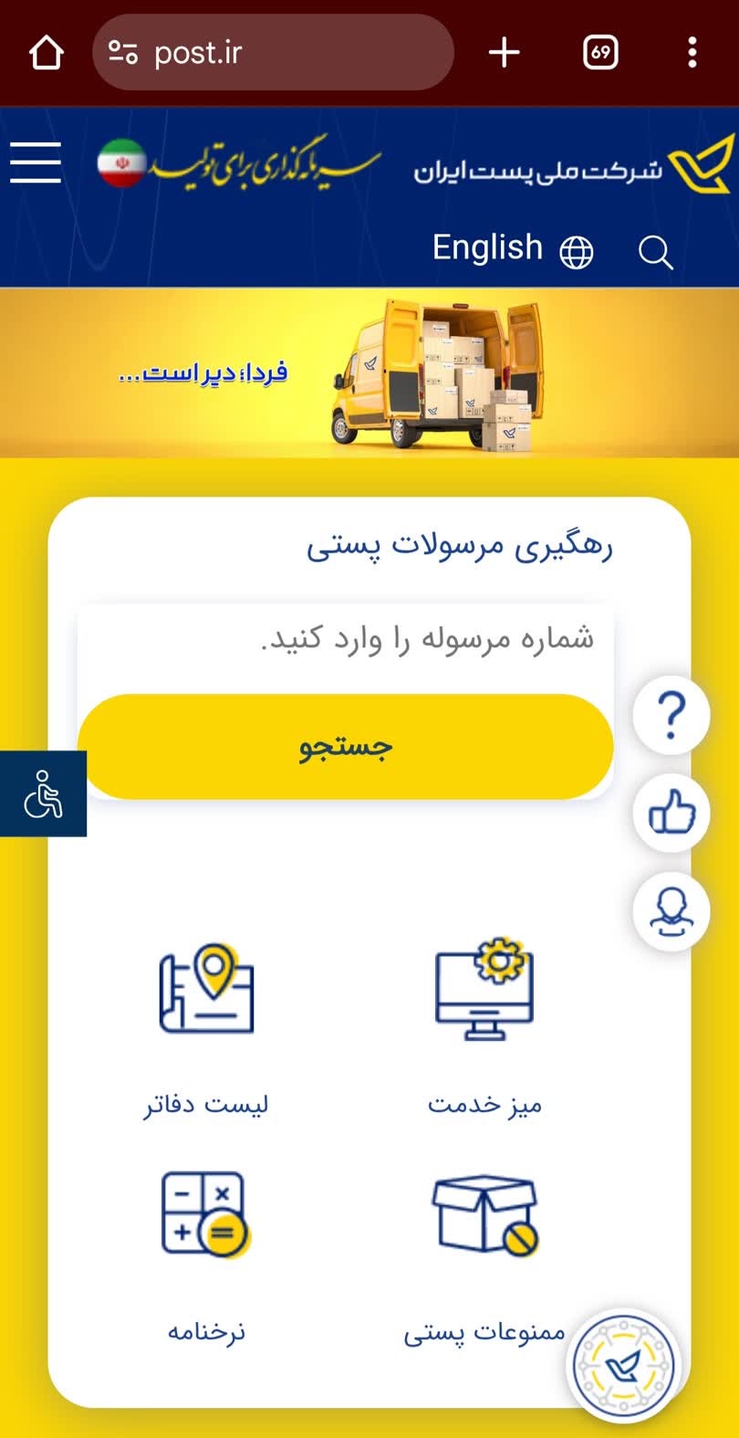 آدرس سایت شرکت ملی پست ایران : کلیک کن