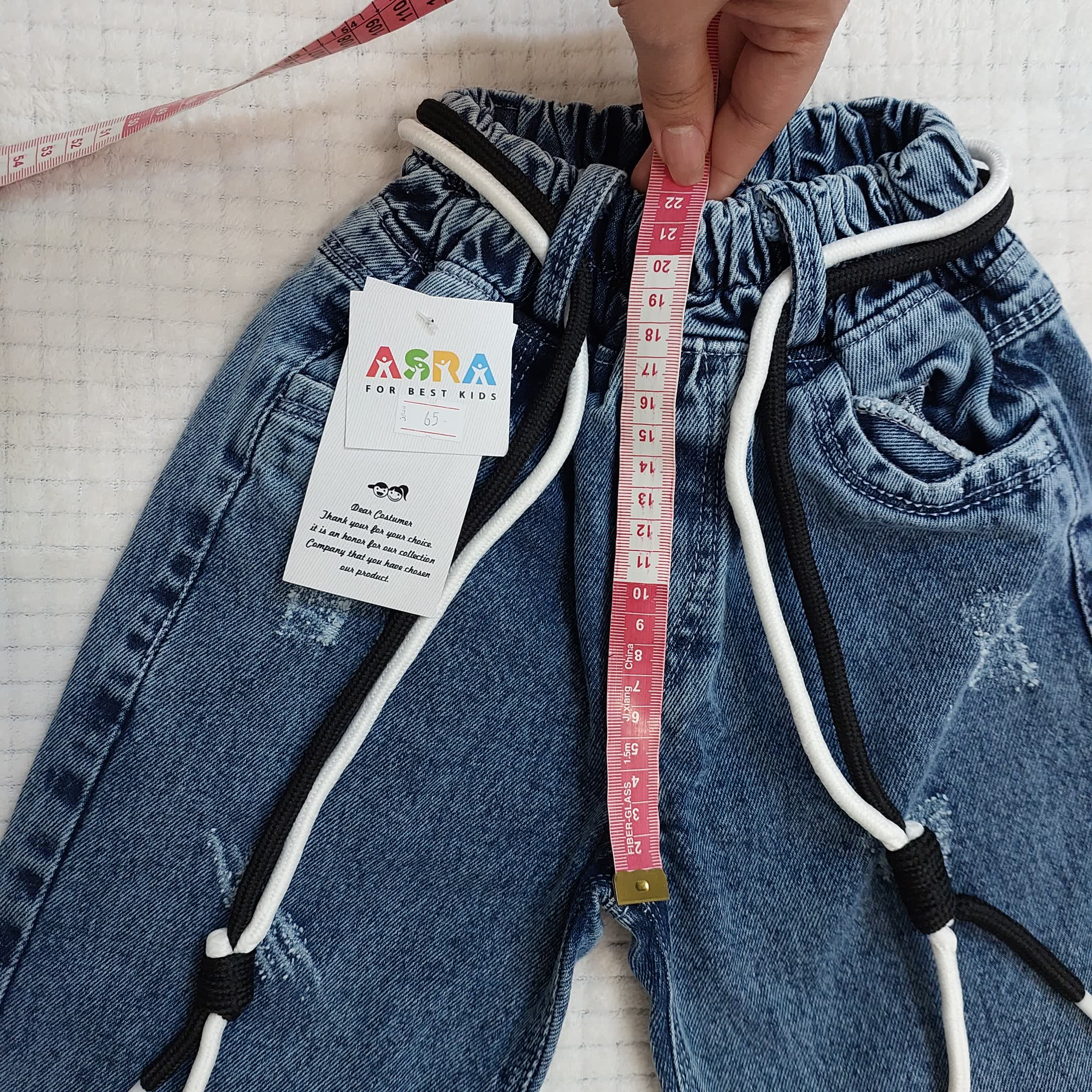 یکی از شلوار های فرزندتون رو روی سطح صاف پهن کنید و به این صورت اندازه ها رو چک کنید :