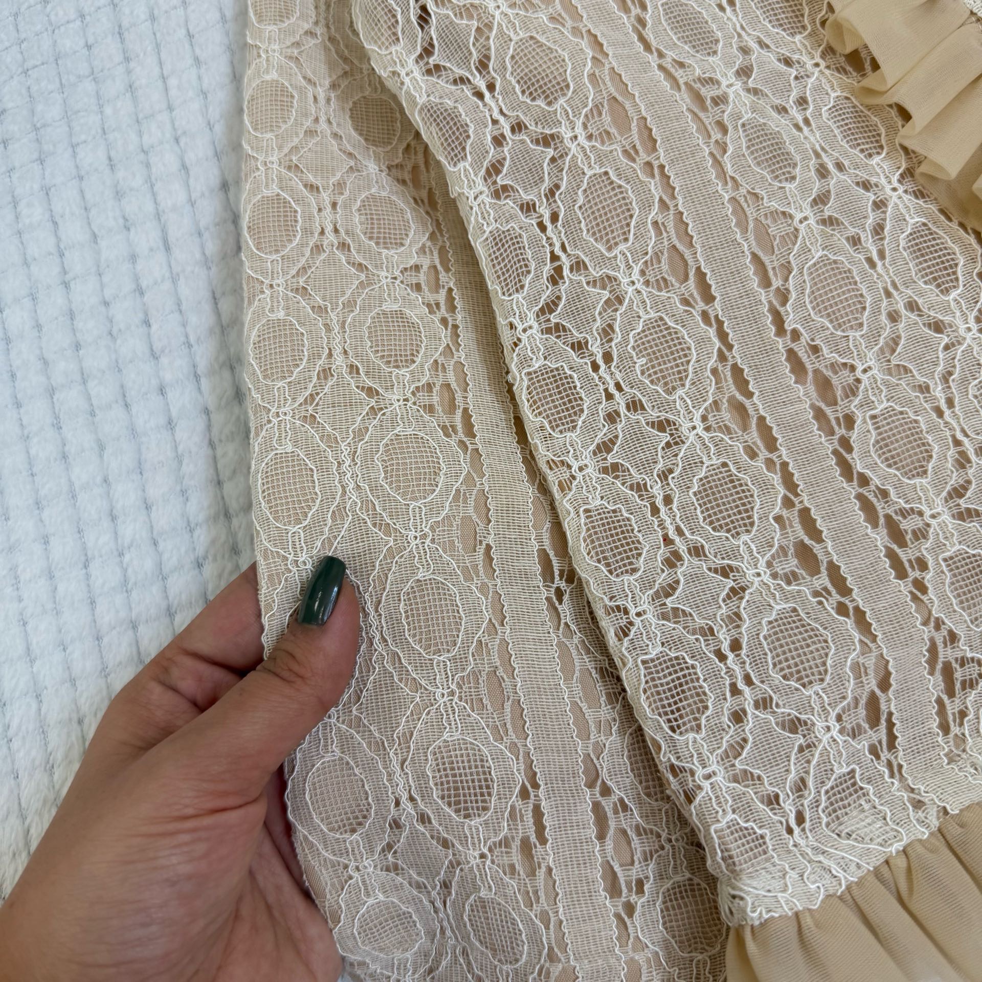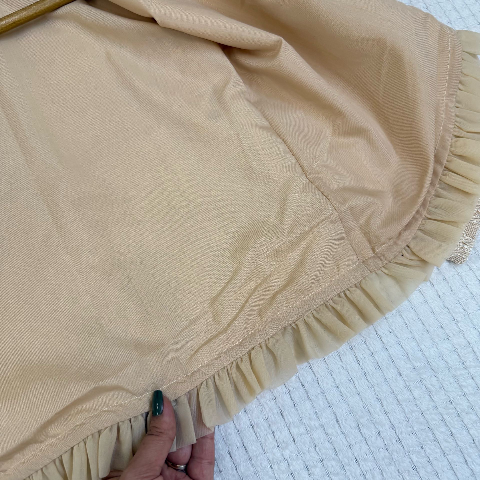 توجه :آستر اینکار صددرصد نخ هست ، اینکار ۳تا۴سانت آبرفت دارد(یعنی بعد شستشو کمی پارچه آستر خودشو جمع میکنه)