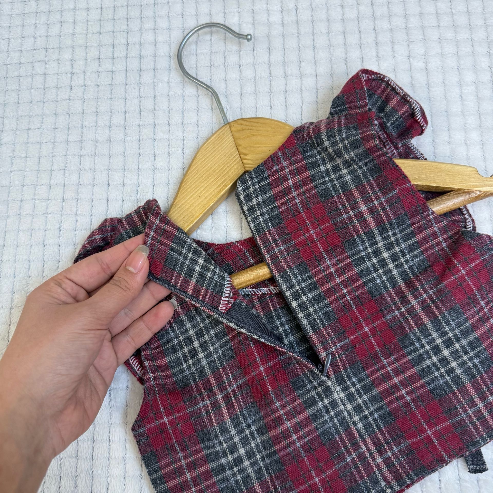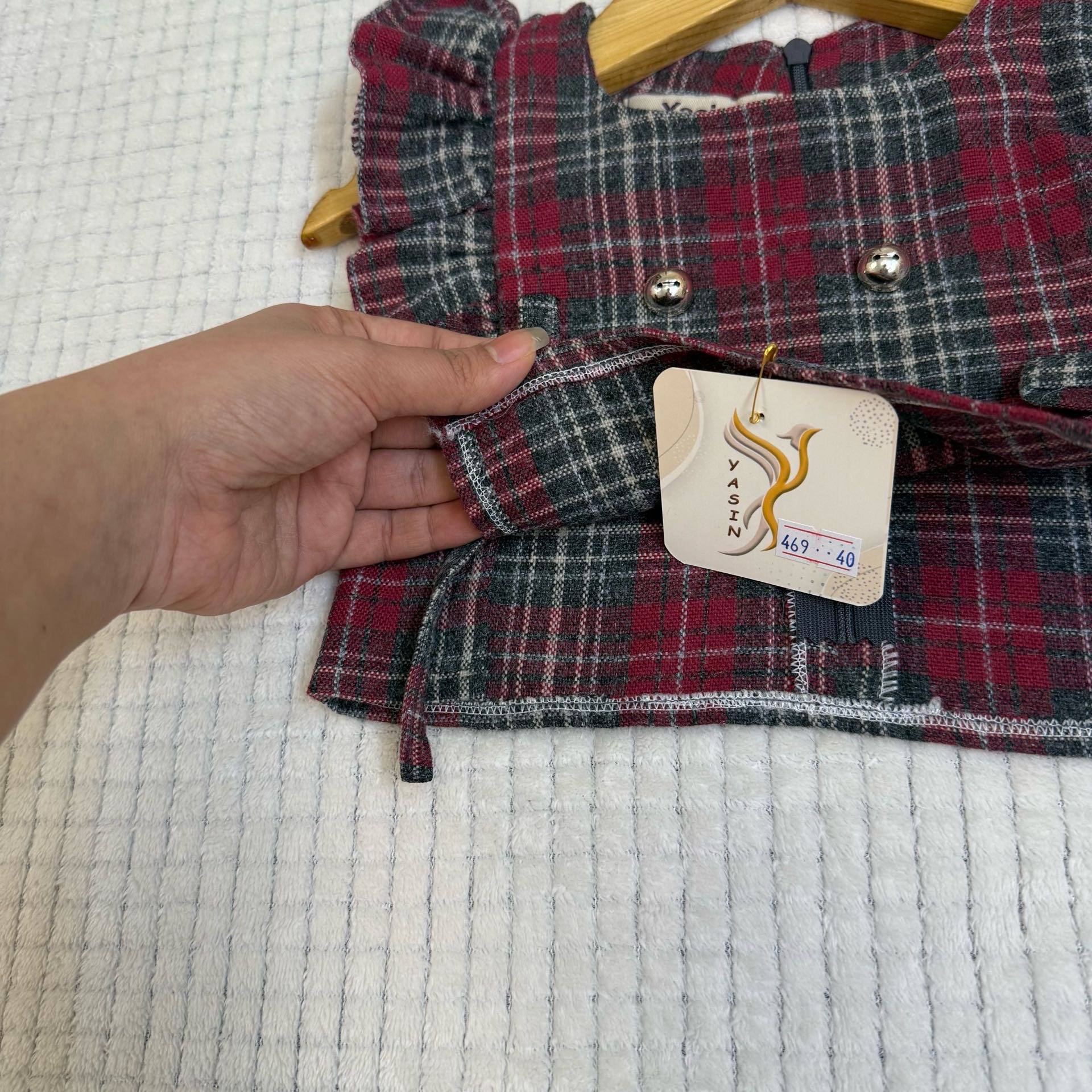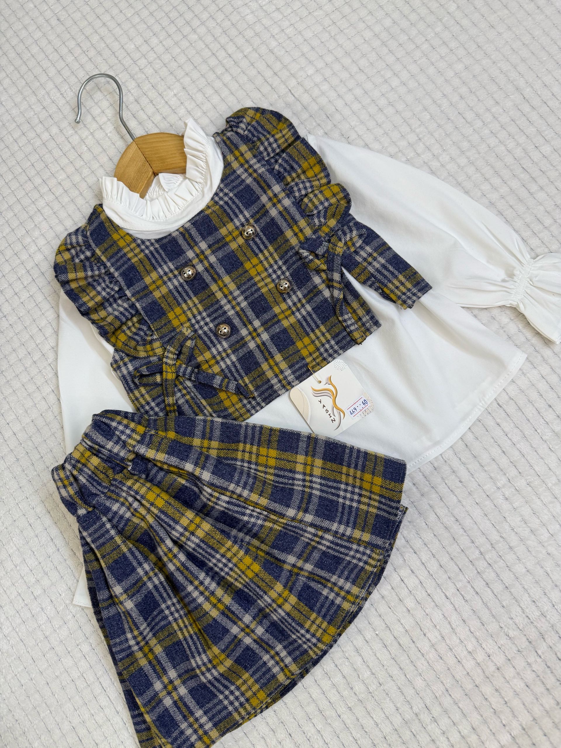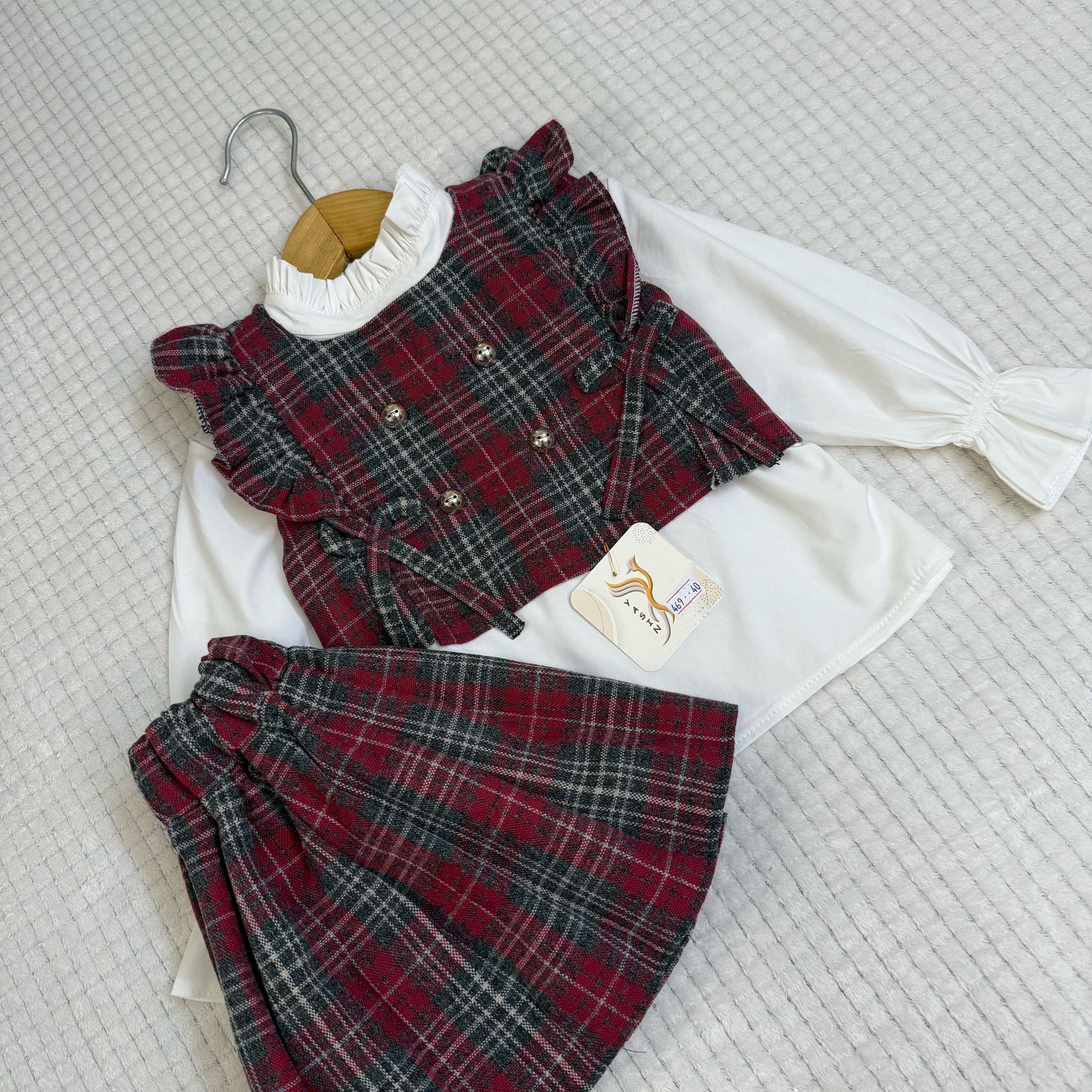 یکی از لباسهای فرزندتون رو روی سطح صاف پهن کنید و اندازه ها را باهم مقایسه کنید . برای راهنمایی بیشتر جهت انتخاب سایز اینجا کلیک کن 👈🏻راهنمای انتخاب سایز ست مجلسی بچگانه